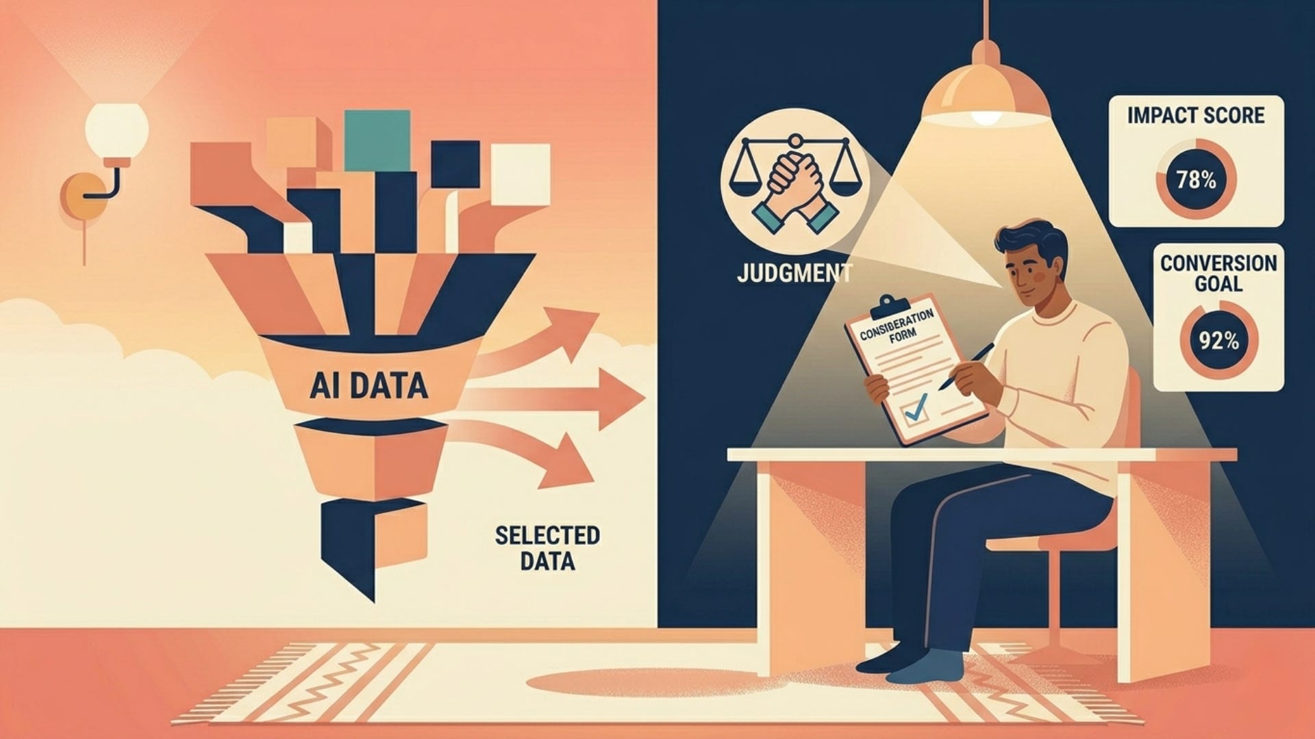 The people who win are the ones who understand this distinction. AI can generate a hundred options in seconds. It can analyse datasets you couldn’t process in a year. It can write, code, design, and iterate faster than any human ever will. But it can’t tell you which option actually solves your customer’s problem. It can’t factor in the organisational politics that will kill a technically perfect solution. It can’t sense when a strategy is right on paper but wrong for the moment.